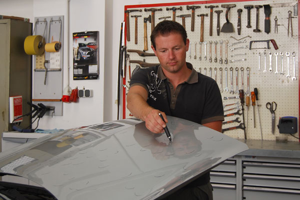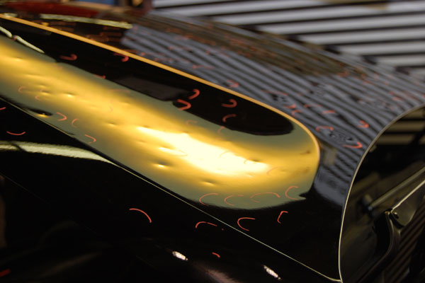 Der Dellendrücker braucht eine bequeme Position zum Arbeiten. Seine Tätigkeit erfordert Ruhe, Geduld und Konzentration. Da die Arbeit sehr anstrengend für die Augen ist, achtet er besonders auf gute Beleuchtung und vermeidet störende Reflexionen. Hier ist eine spezielle Fixierlampe sehr hilfreich. Das Auto muss für die Reparatur vorbereitet werden. So wird z. B. die Dachhimmelverkleidung abgenommen, wenn die Dellen sich am Dach befinden. Der Lack wird poliert, um die Schadensbilder optimal beurteilen zu können. So bleibt auch seine Geschmeidigkeit durch die Pflege erhalten. Bei verwitterten Lacken wird die Rissbildung durch Kerbwirkung unterbrochen.