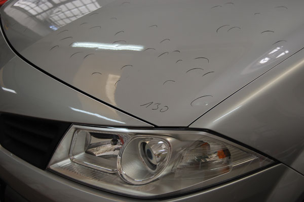 Das Dellenteam erklärt, wie Dellen und Hagelschäden repariert werden.
