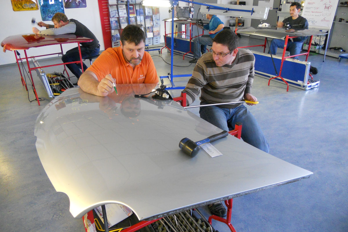 • Spezialkurs für Dellen-Klebe-Systeme sowie erste Schritte in der Verwendung der Dellenwerkzeuge, Dauer 1 Tag. Dieser Kurs findet unmittelbar im Anschluss an die Dellenschulung statt.